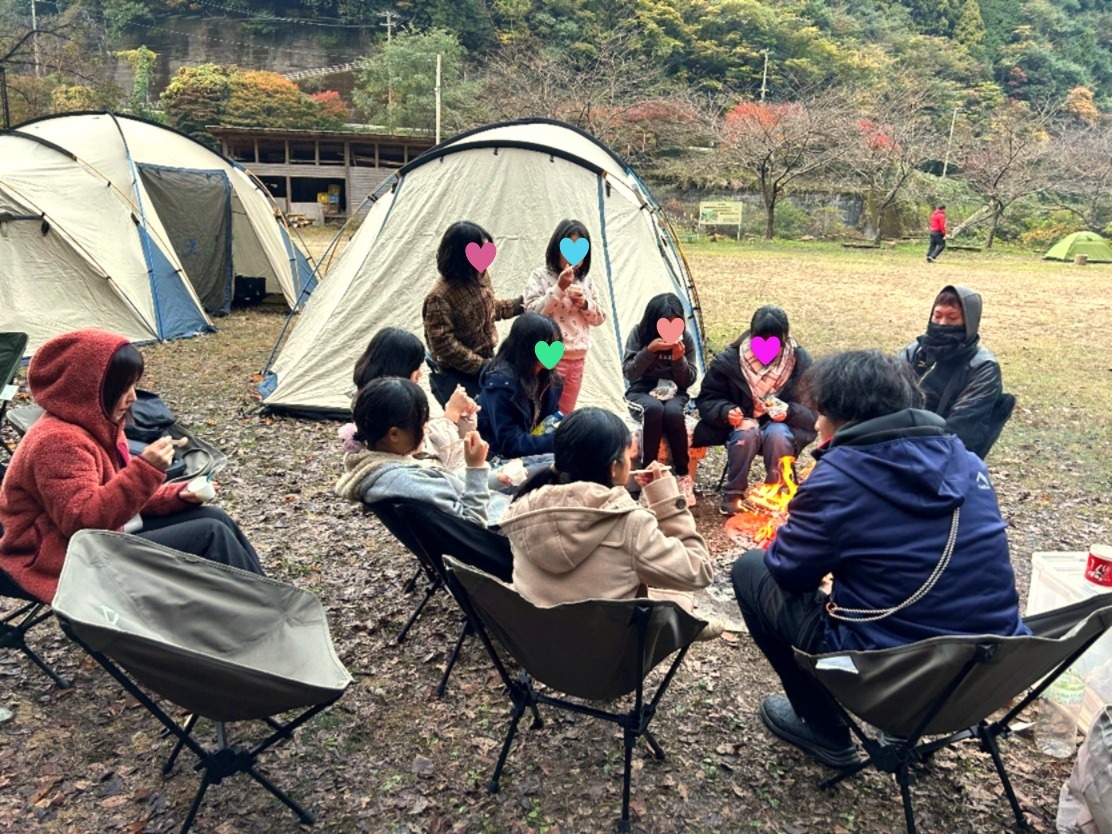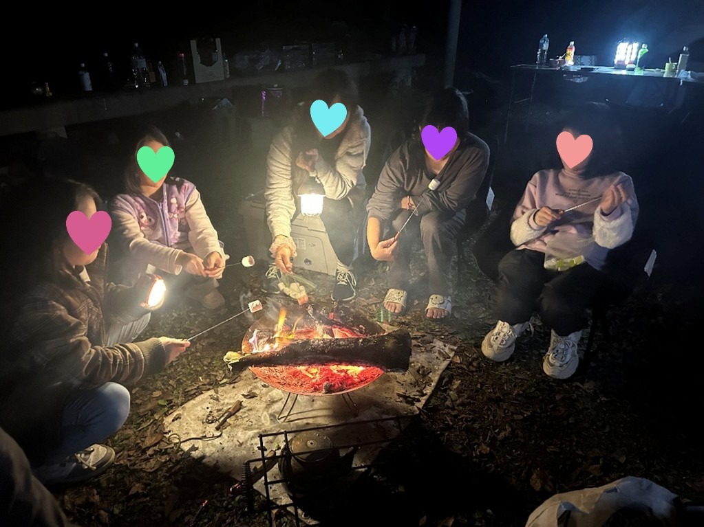 夜は焚火を囲んで、焼きマシュマロを楽しみながら「温かいね」とほっと一息(*^-^*)