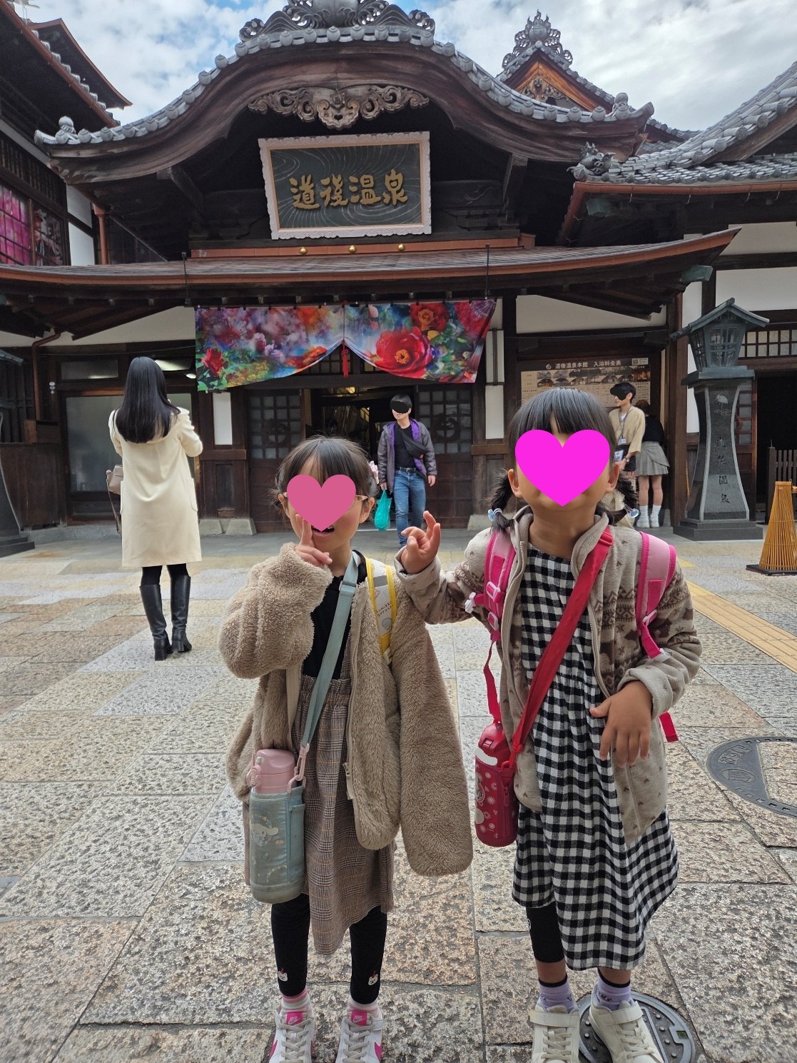道後公園で沢山遊び、道後商店街に移動しおやつを食べ、
